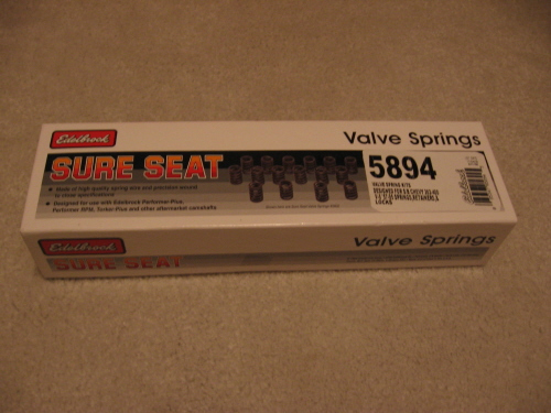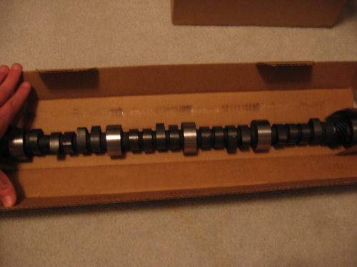 New camshaft and valve springs for a spare 350 engine waiting to be swapped in